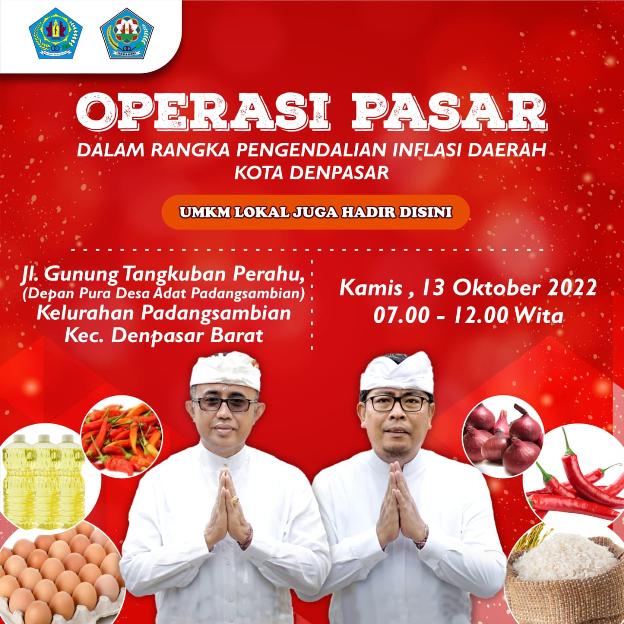 Dalam rangka menekan dan mengendalikan inflasi daerah Kota Denpasar, Dinas Perindustrian Dan Perdagangan Kota Denpasar bekerja sama dengan Kelurahan Padangsambian akan mengadakan Operasi Pasar. Operasi Pasar ini akan diadakan pada :